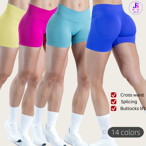 กางเกงขาสั้นโยคะดันทรงไร้รอยต่อเอวอัดพลีทเน้นสะโพกด้วยการเย็บสำหรับเล่นฟิตเนสยิมฟิตเนส